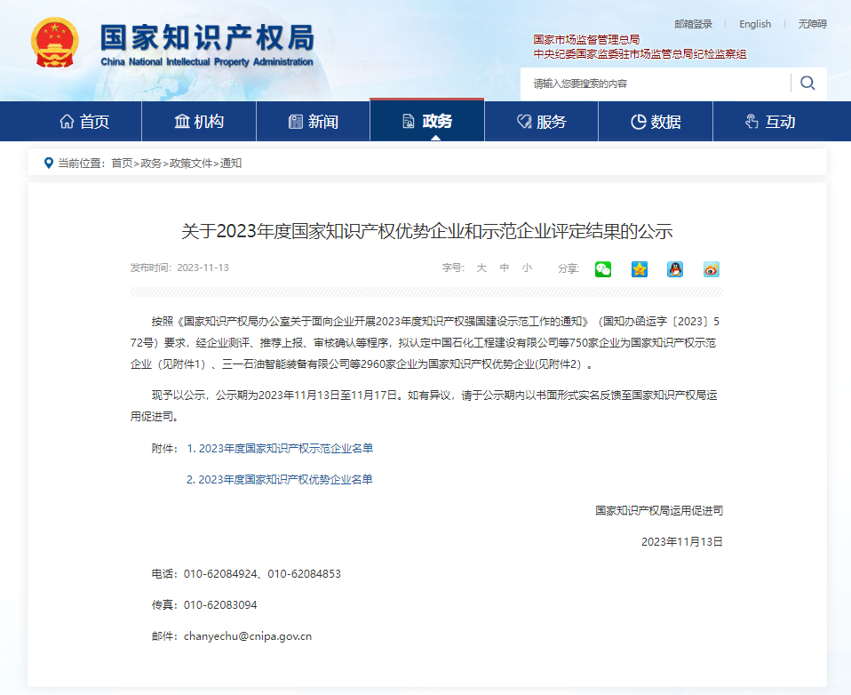 11月13日,國家知識產(chǎn)權局公示了關于2023年度國家知識產(chǎn)權優(yōu)勢企業(yè)和示范企業(yè)評定結果,河南源宏高分子新材料有限公司憑借在知識產(chǎn)權創(chuàng)造、運用、管理及保護等方面的多重優(yōu)勢成功入選“2023年度國家知識產(chǎn)權優(yōu)勢企業(yè)”。